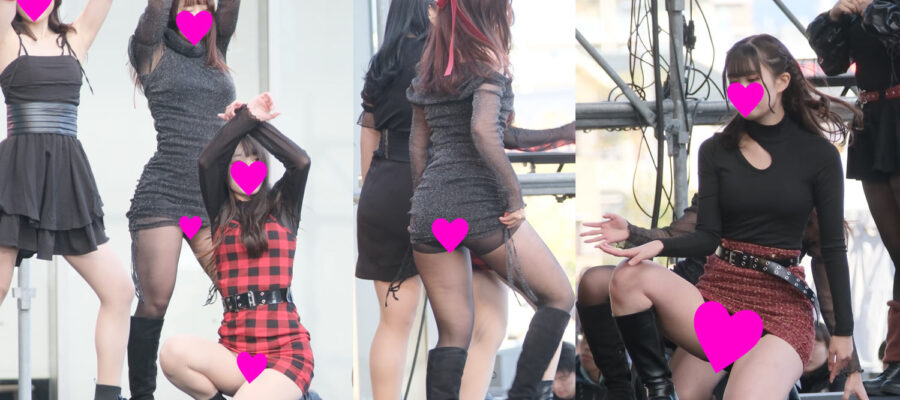 このグループも可愛い子が沢山!!タイトワンピの子はダンス中にどんどん裾がめくれ上がってきて大変なことに!!黒タイツも素敵です!!